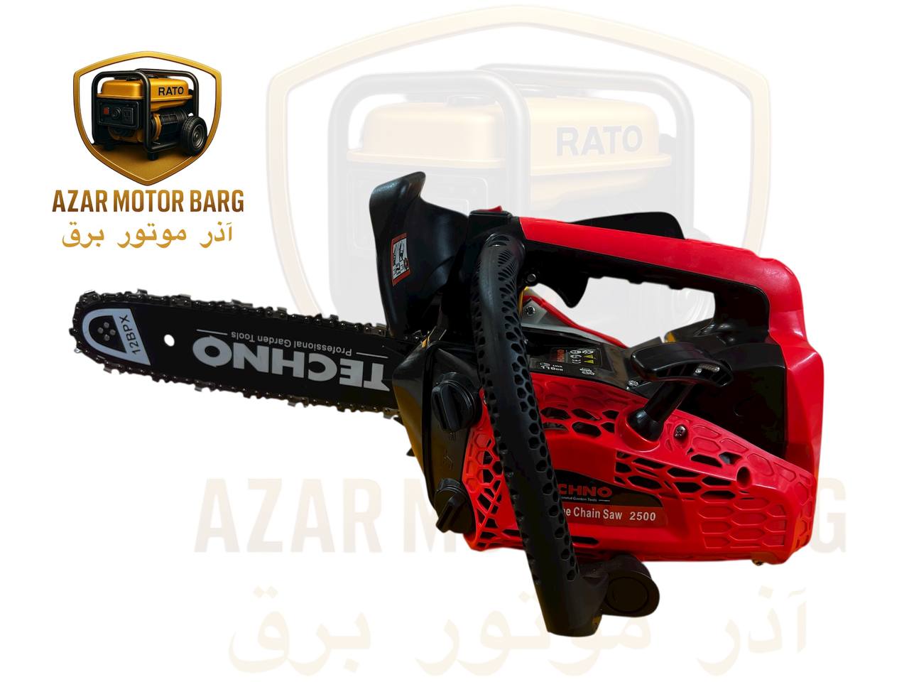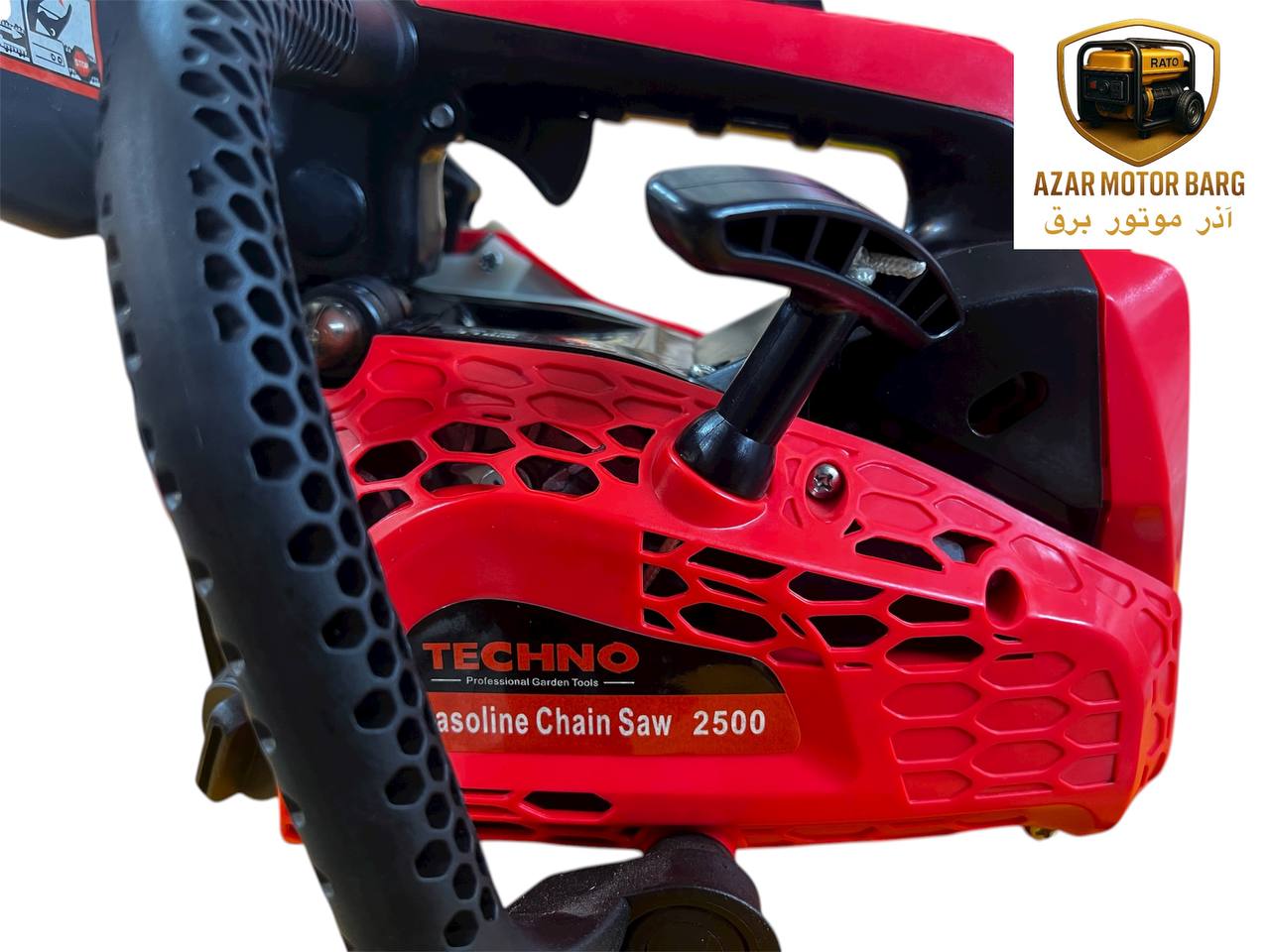 اره موتوری techno مدل 2500 با حجم موتور 25 سی سی و قدرت 1 اسب بخار، اره ای مخصوص هرس کاری می باشد به دلیل اینکه دسته این اره روی سر موتور قرار گرفته که امکان کار با یک دست را به کاربر می دهد. تیغه این دستگاه 25 سانتی متر (10 اینچ) میباشد و میزان صدای تولیدی ان 116 دسی بل است