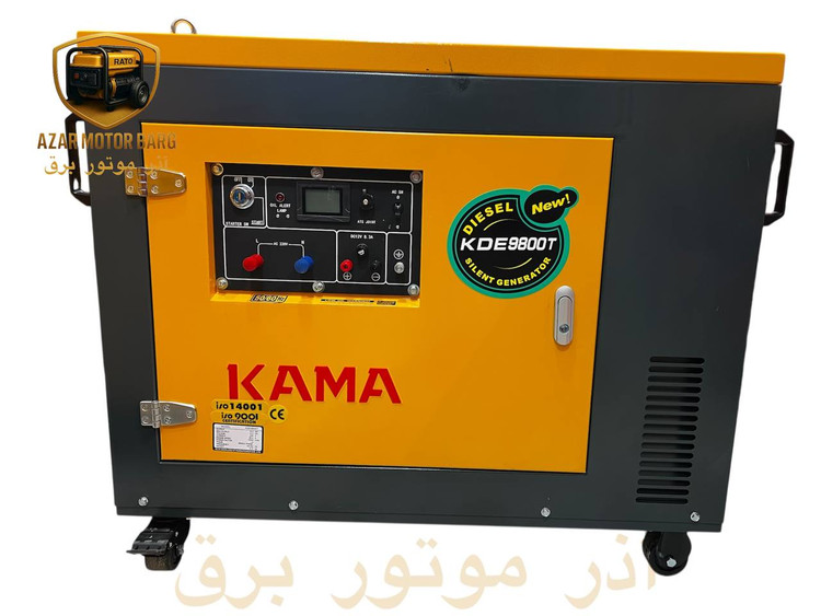 امروزه تمام دستگاه های اطرافمان به کمک برق کار می کنند به همین دلیل به جرات می توان گفت برق با زندگی بشر گره خورده است و حتی نبود یک ساعت برق ممکن است در زندگی همه اختلال ایجاد کند. با مصرف بالای این انرژی، تولید برق در کشور های مختلف با کمبود مواجه است بنابراین احتمال رفتن برق نیز افزایش یافته است. بنابراین وجود یک دستگاه موتور برق در هر خانه و اداره ای لازم و ضروری می باشد. یکی از دستگاه هایی که می توانید برای تولید برق مورد نیازتان رویش حساب باز کنید، دستگاه موتوربرق سایلنت دیزلی کاما مدل KAMA KDE9800T می باشد. این موتور ژنراتور مشابه جریان برق شهری، جریان الکتریکی تولید می کند تا در صورت دسترسی نداشتن به برق شهری بتوان به تامین برق دستگاه های الکتریکی پرداخت. این مدل از سوخت دیزلی جهت تولید جریان الکتریکی بهره می گیرد. این محصول از مخزنی جهت ذخیره ی سوخت بهره می برد، این مخزن از ظرفیت مناسبی برخوردار است. این ژنراتور از وزن بسیار سنگین 210 کیلوگرم بهره می برد به همین دلیل کاما به تعبیه چرخ در زیر این محصول پرداخته تا جابجایی اش امکان پذیر باشد.