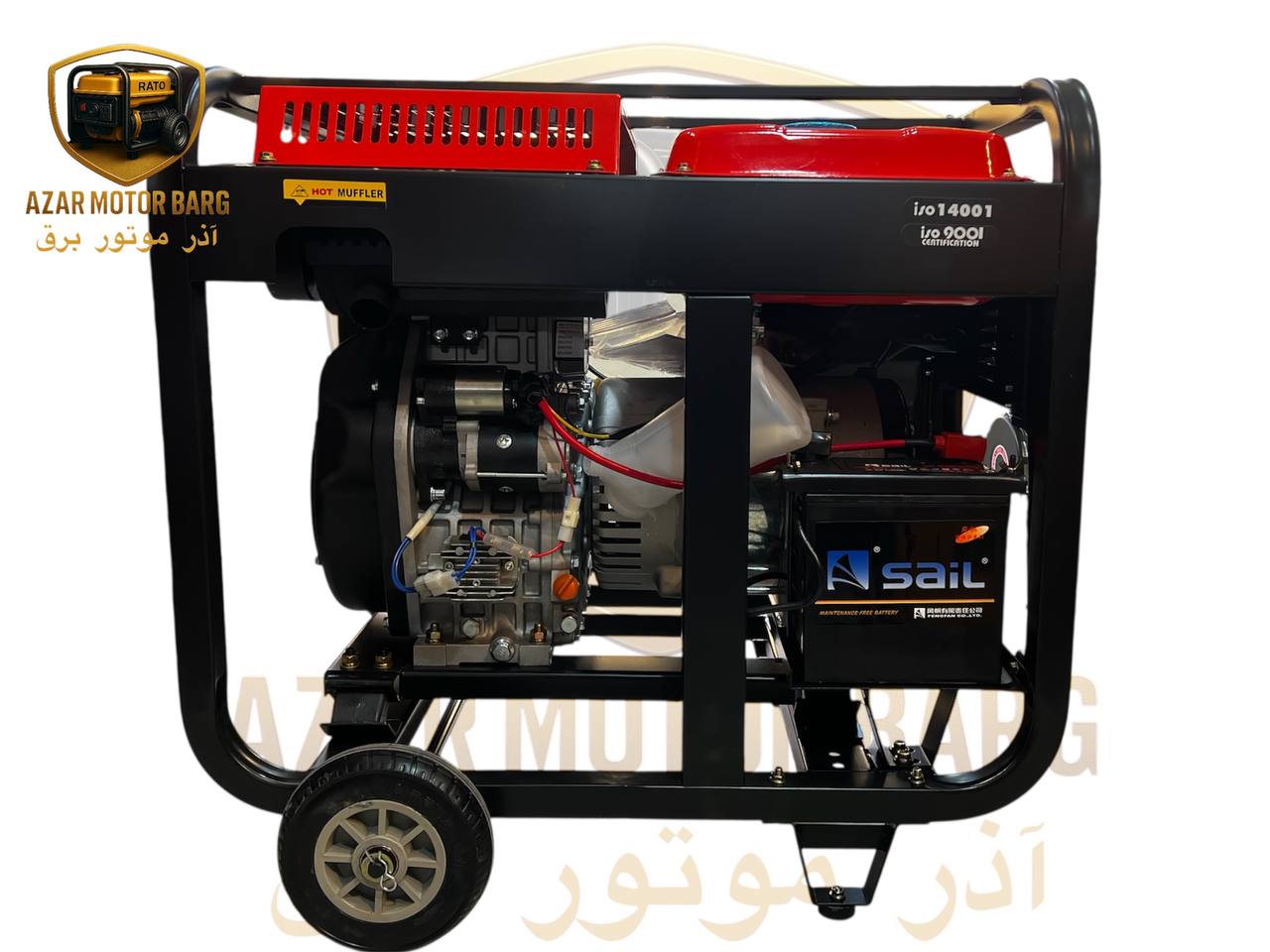 ژنراتور برق چینی موردنظر همراه با چرخ است و دارای سیم پیچ مسی می باشد.